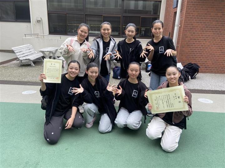11月2日に開催された東京都高等学校舞踊研究発表大会にて、『「虚と実」―私の中の二つの顔』という作品を披露しました。高校1・2年生8名によるチームで、難解なテーマに真摯に向き合い、表現力と完成度を高めながら作品を創り上げました。その成果が認められ、「奨励賞」を受賞するという栄誉にあずかることができました。このメンバーで踊るのはこれが最後となり、かけがえのない思い出となりました。