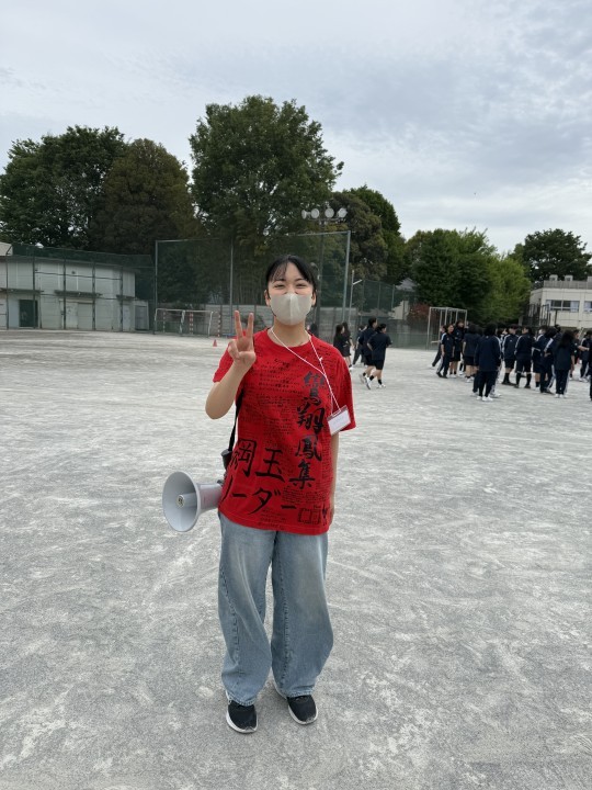 さて皆さんは「赤色」と聞いて、どのようなイメージを持たれますか。情熱・エネルギー・力強さといった印象を持つ方が多いのではないでしょうか。私にとって、赤という色はとても思い出深い色です。小学校六年生の運動会では、赤組の旗を掲げて選手団長を務めました。大きな旗を振り、仲間と声を掛け合いながら一つの目標に向かって突き進んだあの熱い時間は、私にとってかけがえのない財産です。そのため、世界一の体育祭が催されるこの桐朋女子での六年間を再びこの「赤」という色と共に歩んでいけることに、不思議な縁と喜びを感じています。