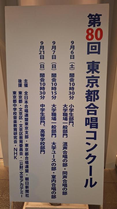 9月21日(日) 文京シビックホール大ホールにて開催された 第80回東京都合唱コンクール に出場しました。