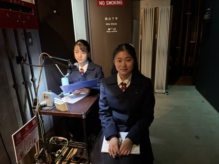 また、放送部の中学3年生2名が会場アナウンスを務めました。例年高校生が担当することが多いのですが、今年は高校生が大会を控えているため、中学3年生に大役が任されました。難易度の高いアナウンスでしたが、落ち着いて役目を果たしました。