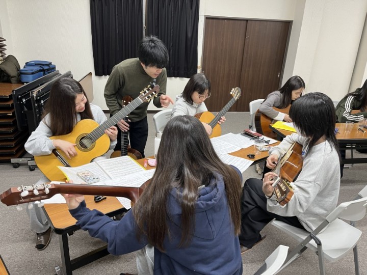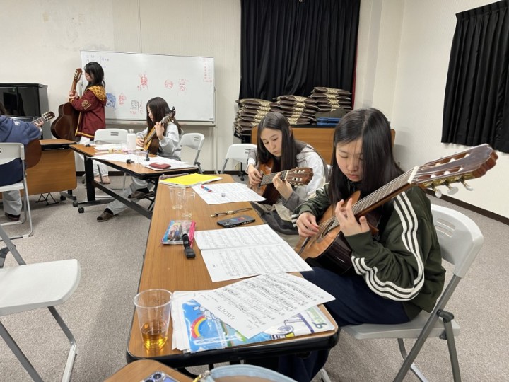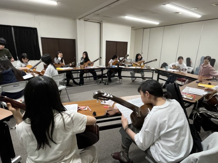 ギター部は、3月23日から25日まで山中湖で春合宿を行いました。和気あいあいとした雰囲気のなか、プロのギタリストとして活躍しているコーチの指導のもとで着実に技術を高め、充実した時間を過ごすことができました。2日目の夜には部内での発表会も行い、互いに練習成果を披露し合いました。この合宿で得たものを、4月以降の発表の機会に活かしていきたいと思います。