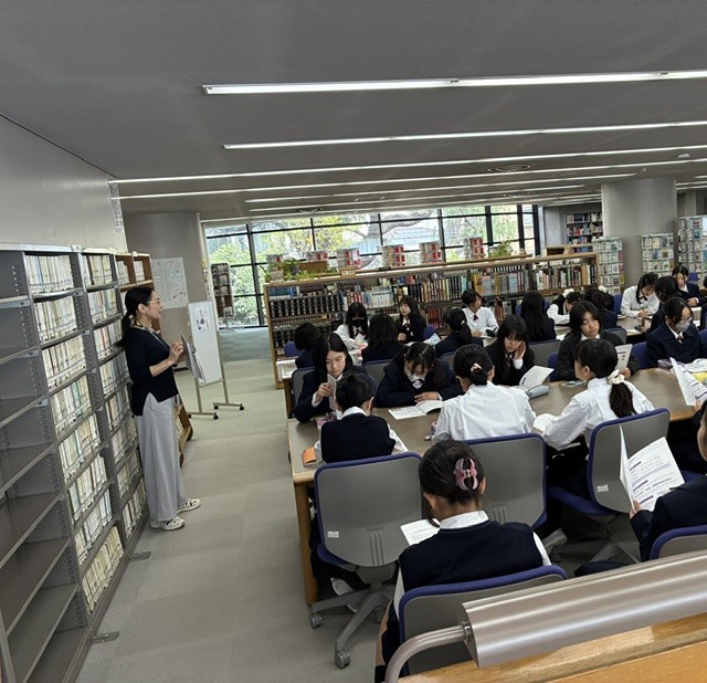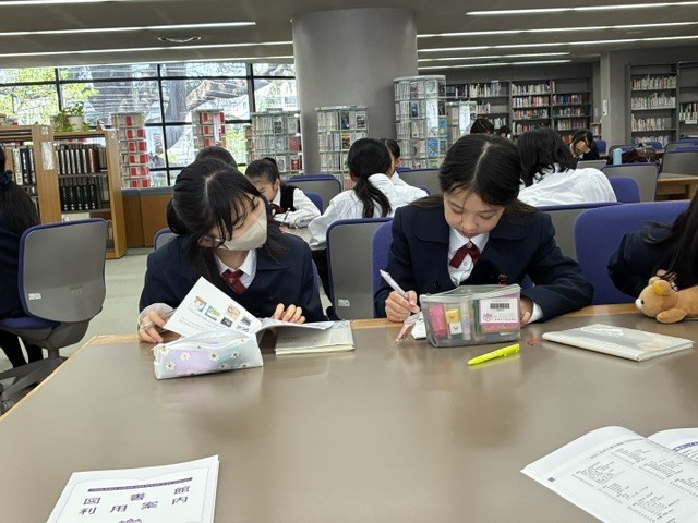 4月20日(月) 中学1年生対象図書館ガイダンスを行いました。利用案内冊子に沿って図書館の使い方、図書の排架や分類のしくみ、検索の仕方などを勉強しました。当日配布された利用カードを使って早速本を借りる生徒も。これから勉強のために、また楽しみのためにたくさん図書館を利用してほしいと思います。